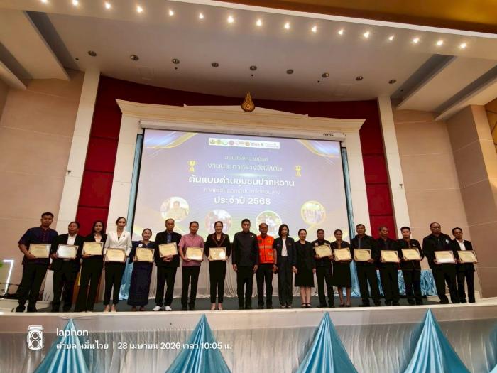 วันอังคารที่ 28 เมษายน 2569 โดย นางบุศรัตน์ นิลาลาด นายกองค์การบริหารส่วนตำบลหนองบอนเข้ารับเกียรติบัตรเชิดชูเกียรติโครงการ "ต้นแบบด่านชุมชนปากหวาน ภาคตะวันออกเฉียงเหนือตอนล่าง"ลงข่าว: 28/04/2569 7 2