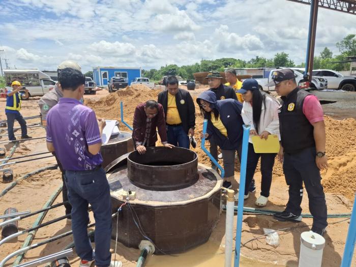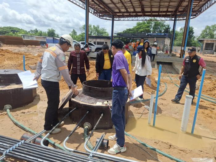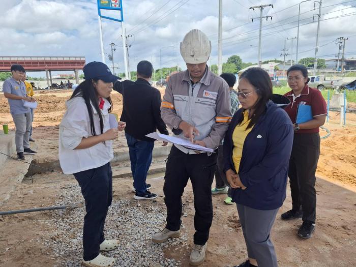 องค์การบริหารส่วนตำบลหนองบอน ออกตรวจสอบผังบริเวณ การก่อสร้างสถานีบริการน้ำมัน ปตท. ณ บ้านหนองบอน