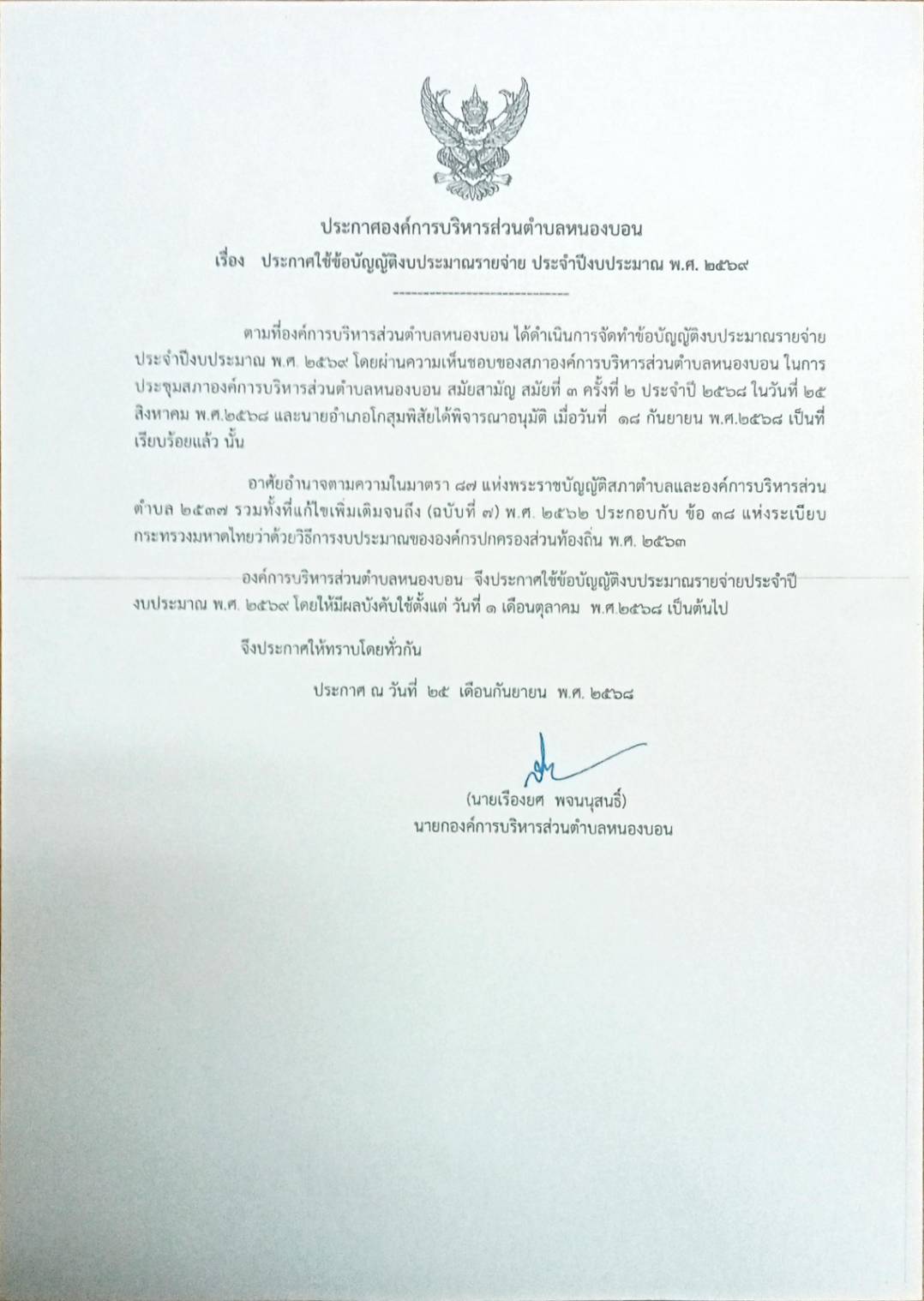 ข้อบัญญัติองค์การบริหารส่วนตำบลหนองบอน