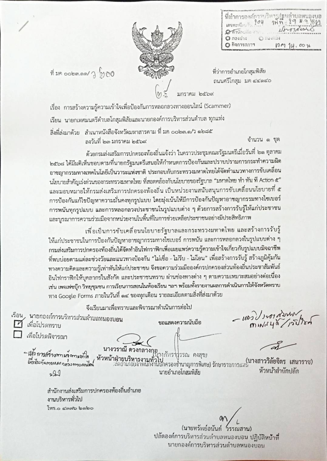 องค์การบริหารส่วนตำบลหนองบอน แจ้งประชาสัมพันธ์การสร้างความรู้ความเข้าใจเพื่อป้องกันการหลอกลวงทางออนไลน์ (Scammer)